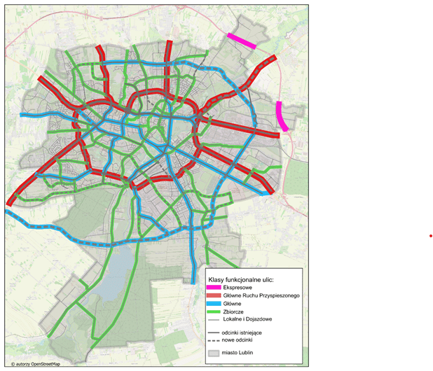Wśród nowych tras drogowych znalazły się m.in. ulica klasy GP w rejonie ul. Turystycznej, odcinek ulicy klasy G w południowej części miasta na przedłużeniu ul. Dekutowskiego od ul. Droga Męczenników Majdanka do ul. Abramowickiej, a także nowy ciąg komunikacyjny pomiędzy ul. Abramowicką a węzłem „Lublin-Węglin”.