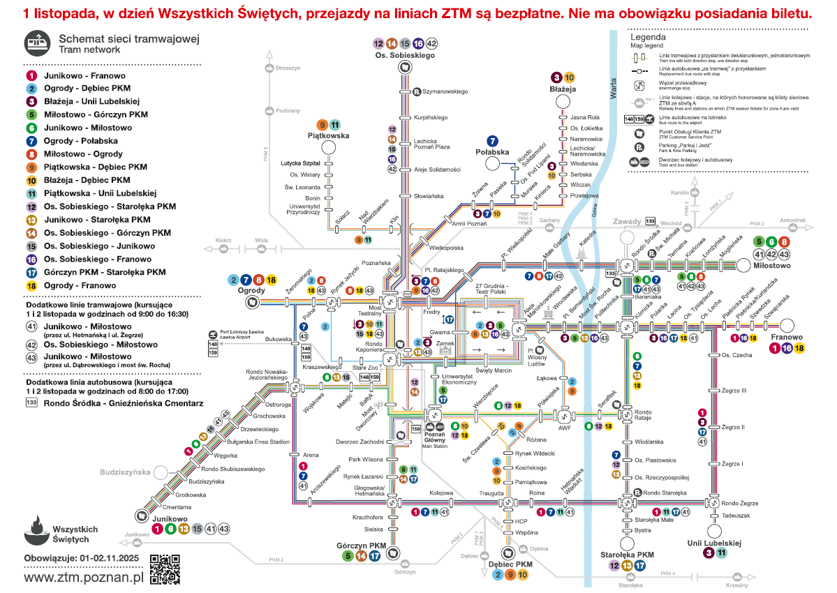 – Liczymy, że wprowadzenie darmowej komunikacji w dniu 1 listopada oraz znaczące jej wzmocnienie zachęci jeszcze więcej osób do skorzystania z przejazdów tramwajami i autobusami – mówi Jan Gosiewski, dyrektor Zarządu Transportu Miejskiego w Poznaniu.