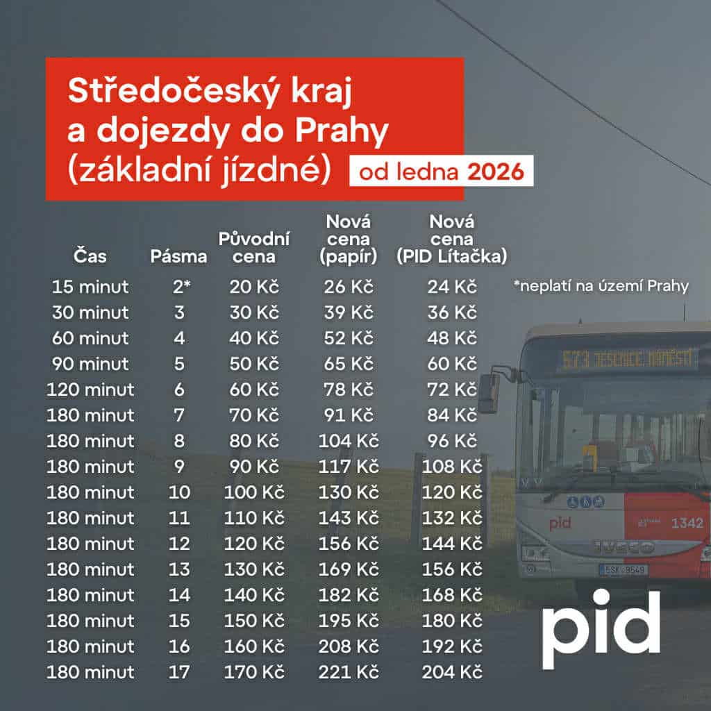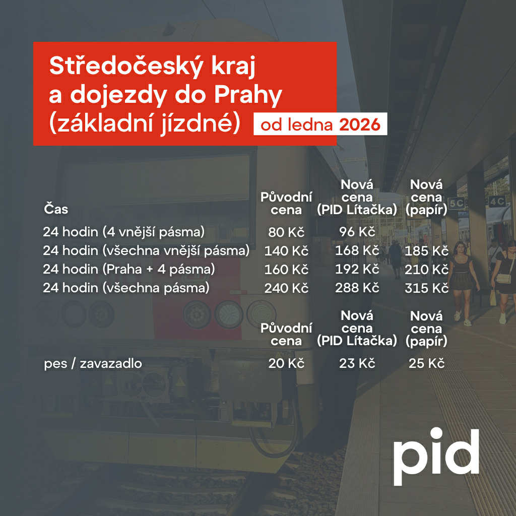 Z dniem 1 stycznia 2026 r. wchodzą w życie istotne zmiany w systemie taryfowym Pražská integrovaná doprava (PID).