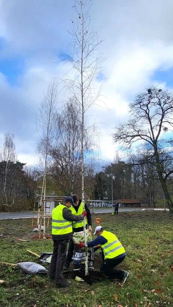 Na pętli Fort Radiowo na Bemowie ZOM posadził drzewa gatunku Betula pendula ‘Tristis’, czyli brzozy brodawkowate. Gdy urosną, ich zwisające gałęzie będą prezentować się bardzo dekoracyjnie, a liście, które jesienią przebarwiają się na żółto-brązowo, będą dekoracyjnym akcentem.