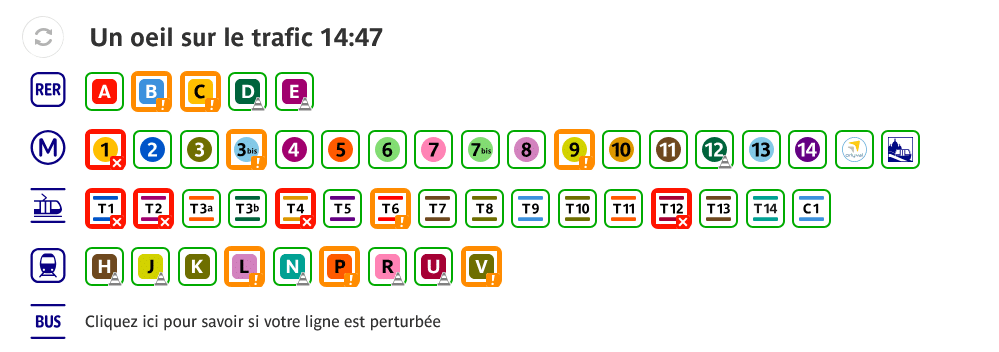 W praktyce jedynie około 30 linii autobusowych funkcjonowało w ograniczonym zakresie w centrum Paryża i na najbliższych przedmieściach. Transport publiczny w regionie Île-de-France opierał się głównie na metrze, kolei RER oraz tramwajach, które również notowały opóźnienia, ale pozostawały bezpieczniejszą alternatywą dla autobusów.