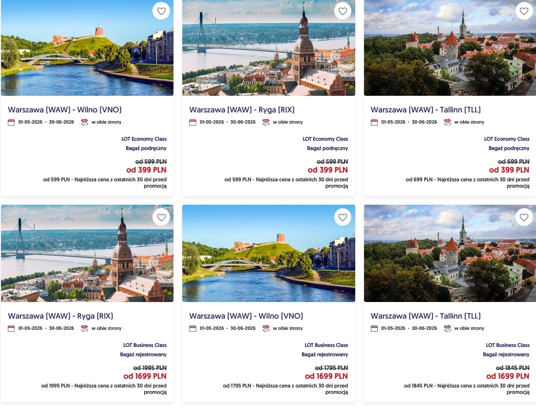Na nieco dłuższej trasie Warszawa–Tallinn promocyjna cena również spada do 399 PLN, choć wcześniej wynosiła 699 PLN.