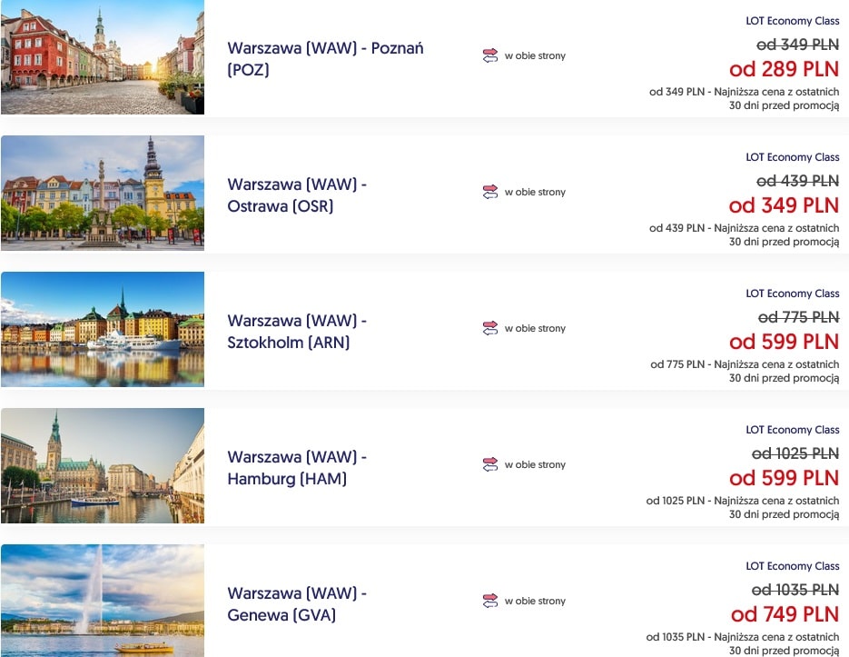 Dzisiejsze kierunki w promocji LOT to: Poznań, Ostrawa, Genewa, Hamburg, Sztokholm, Los Angeles.
