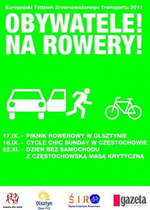 Tradycyjnie między 16 a 22 września ma miejsce Europejski Tydzień Zrównoważonego Transportu oraz Europejski Dzień bez Samochodu. Fundacja Miasta dla Ludzi oraz Śląska Inicjatywa Rowerowa w Częstochowie i Częstochowska Masa Krytyczna, przygotowały cykl imprez poświęconych problematyce transportu, ochrony środowiska i komunikacji rowerowej w naszym regionie.