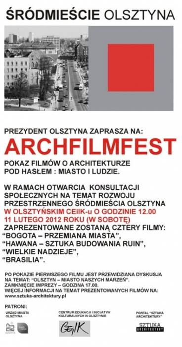 Projekcja filmów o architekturze i dyskusja rozpocznie się w CEiIK-u 11 lutego 2012 roku o godzinie 12.00 .