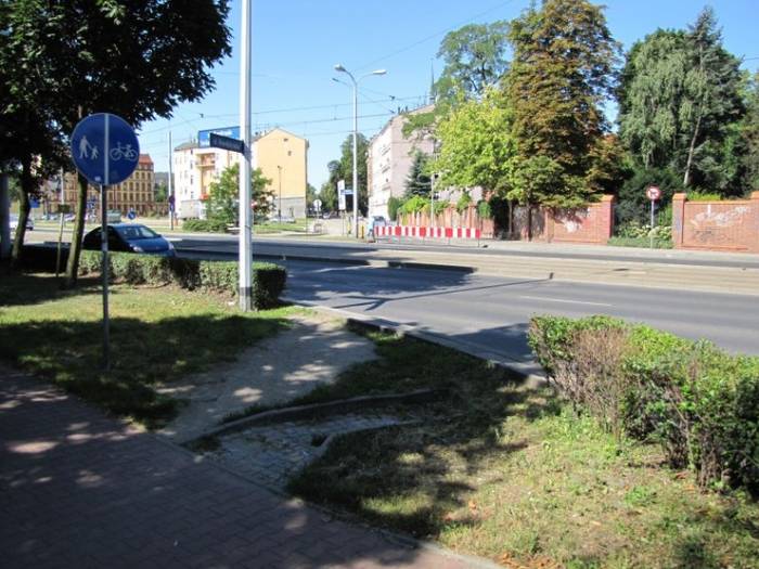 Grunwaldzka mogłaby lepiej pełnić swoją rolę, gdyby można było przejechać z niej na ul. Hlonda. Niestety, w ramach przebudowy Sienkiewicza w 2005 roku zlikwidowano tu przejście, żeby dobrzezrobić kierowcom na Wyszyńskiego. Przejście od tego czasu funkcjonuje „na dziko”, na rowerze trzeba jechać na około:
