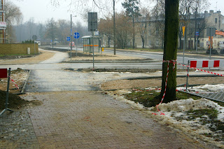 Na przecięciu z ulicą Krakowską i zakończeniu całego ciągu poczyniono już przygotowania pod wyznaczenie przejazdu dla rowerzystów – przesunięto słupek sygnalizatora tak, aby móc zmieścić przejazd obok (po południowej stronie) przejścia dla pieszych |