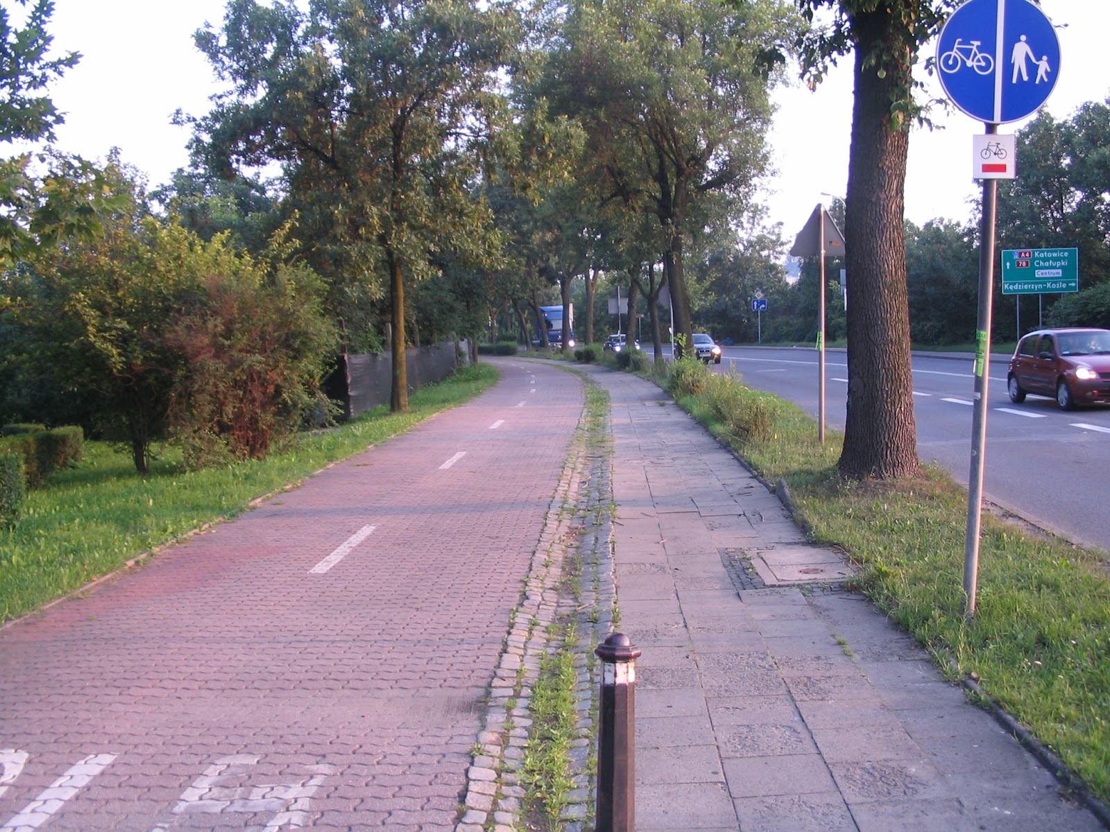 Następne są drogi asfaltowe połączone z częścią dla pieszych. Z takimi mamy do czynienia wzdłuż ulicy Portowej (okolice estakady i portu – fot. 3), pomiędzy ulicą Zwycięstwa i Parkiem Chopina, na Sikorniku oraz wzdłuż Tarnogórskiej.