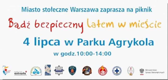Impreza „Bądź bezpieczny latem w mieście” odbędzie się w piątek (4 lipca) w godz. 10.00 –14.00 w Parku Agrykola. Podczas imprezy MSW i służby zainaugurują kampanię pn. „Rowerem bezpiecznie do celu”. Akcja potrwa do końca wakacji.