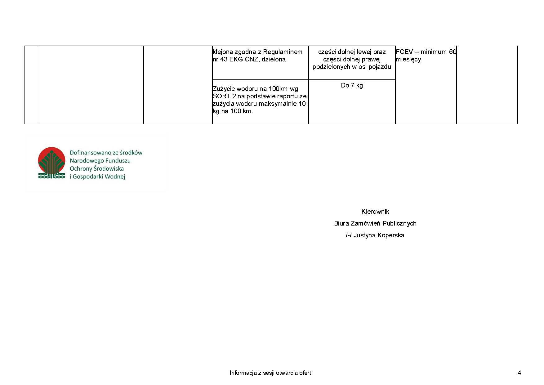- Gwarancja jakości na całe autobusy FCEV – minimum 60 miesięcy: 60 miesięcy.