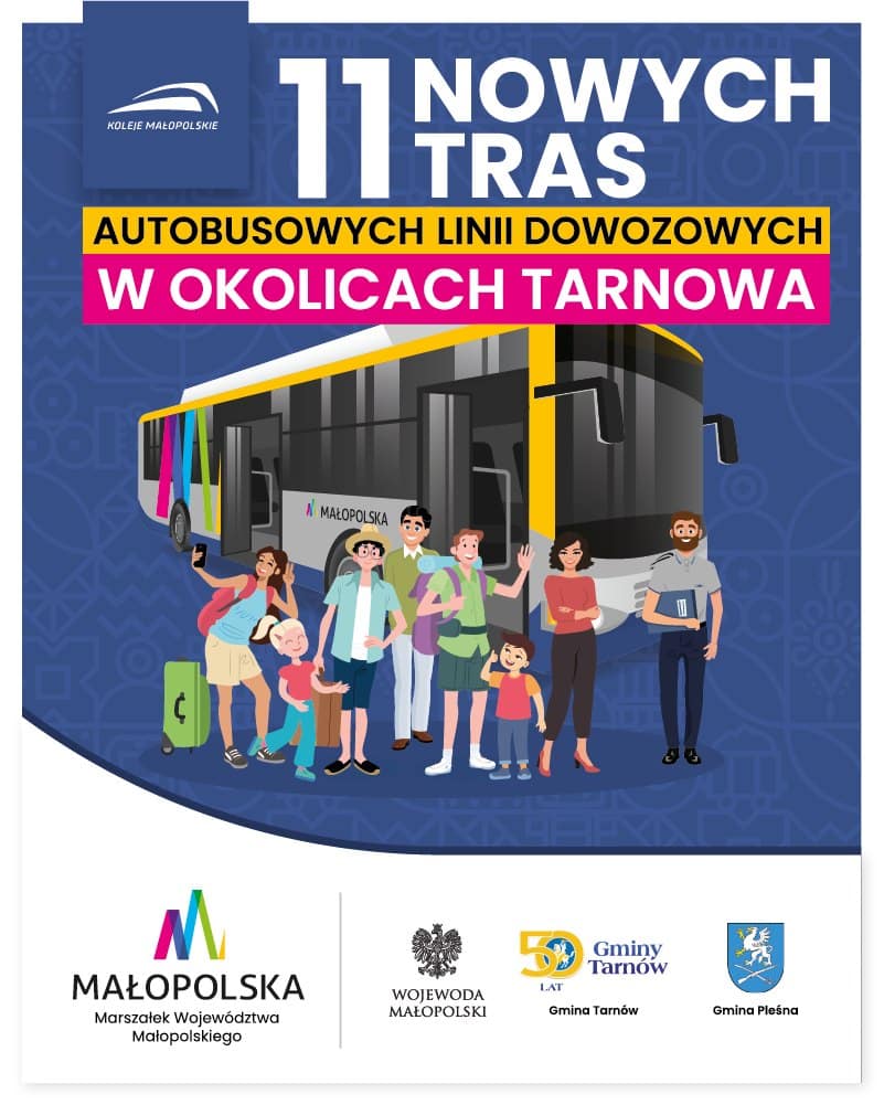 1 września Koleje Małopolskie uruchomiły aż 11 nowych Autobusowych Linii Dowozowych w gminach Tarnów i Pleśna. Wiemy kto je obsługuje.