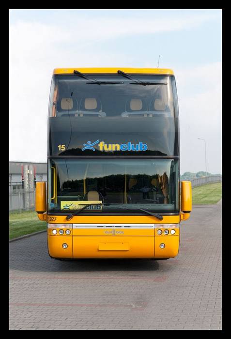 Z początkiem czerwca flota autokarów poznańskiego Biura Podróży Funclub powiększyła się o dwa piętrowe autobusy turystyczne Van Hool TD927 Astromega. To pierwsze nowe autokary belgijskiej na polskim rynku. Poznański touroperator przyzwyczaił nas już do żółtych autokarów Scania-Irizar PB czy Century;potem przyszła niespodzianka w postaci Neoplana Starlinera (o tym zakupie zadecydowała umowa z KKS Lech i preferencyjna cena pojazdu) i teraz doczekaliśmy się nowego rozdziału w historii firmy –zakupów autobusów marki Van Hool, która do tej pory widoczna była na polskich drogach głównie w barwach jednej firmy –Mazurkas Travel, która posiada ok. 23 tego typu autokarów. Poznański Funclub nie poprzestaje jednak tylko na samym zakupie i już w październiku (na targach TRANSEXPO) chce oficjalnie uruchomić przedstawicielstwo belgijskiego producenta w naszym kraju. Równolegle ma powstać sieć serwisowa. Czy taki dualny układ: sprzedawca-przewoźnik się uda? Zobaczymy, natomiast przykład opisywanego także w tym wydaniu InfoBusa –opolskiego Sindbada pokazuje, że ścisłe przywiązanie do jednej marki (pierwsze Setry we Polsce sprzedawał przecież serwis przewoźnika –Bus Serwis) wychodzi na dobre.