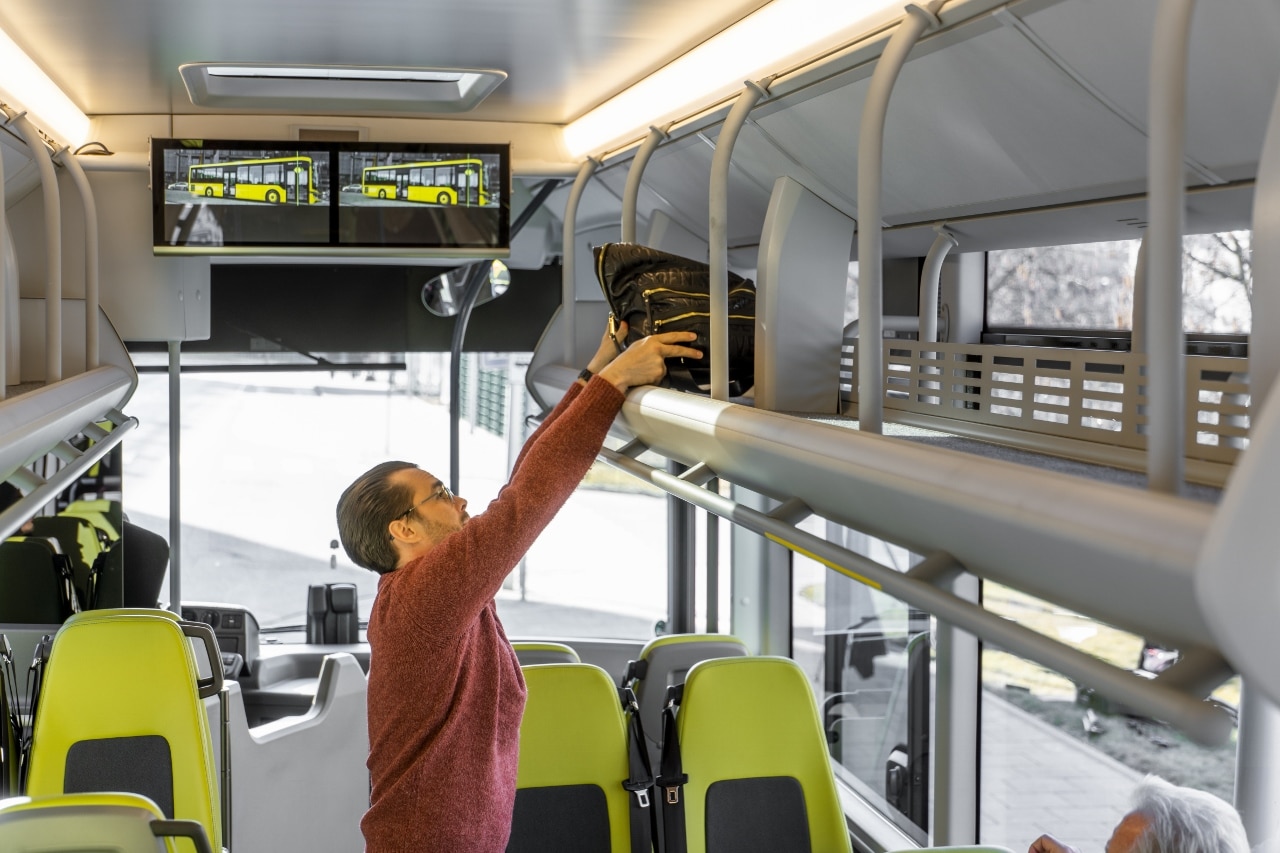 Ponadto montowany seryjnie czterocalowy kolorowy wyświetlacz o wysokiej rozdzielczości ze standardowym menu przystanków, który oferuje nowy wygląd zbliżony do wyświetlaczy w autokarach, jest jeszcze bardziej czytelny i zapewnia najlepszą możliwą widoczność. Zoptymalizowane lusterka, które są standardowo przymocowane do ramy rurowej, zapewniają najlepszą widoczność do tyłu i na boki. Są dostępne z przednim lusterkiem obserwacyjnym i bez niego, a także z oddzielnym lusterkiem autobusu szkolnego na drzwiach 1 – ważna funkcja w autobusach miejskich, które często są wykorzystywane jako autobusy szkolne.