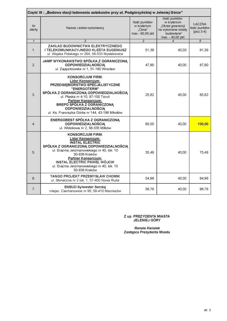 - część 3 - budowa stacji ładowania autobusów przy ul. Podgórzyńskiej w Jeleniej Górze.