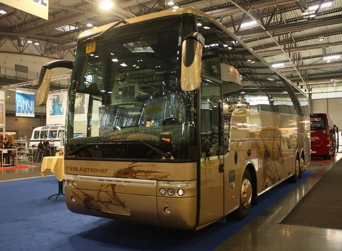 Niespodzianką brneńskich targów było stoisko belgijskiej firmy Van Hool z turystycznym modelem Astronef. Jak widać Belgowie zaczynają coraz mocniej naciskać na środkowoeuropejskie rynki. W kolejnym InfoBusie opiszemy bliżej ten ciekawy model z amfiteatralnym układem siedzeń.