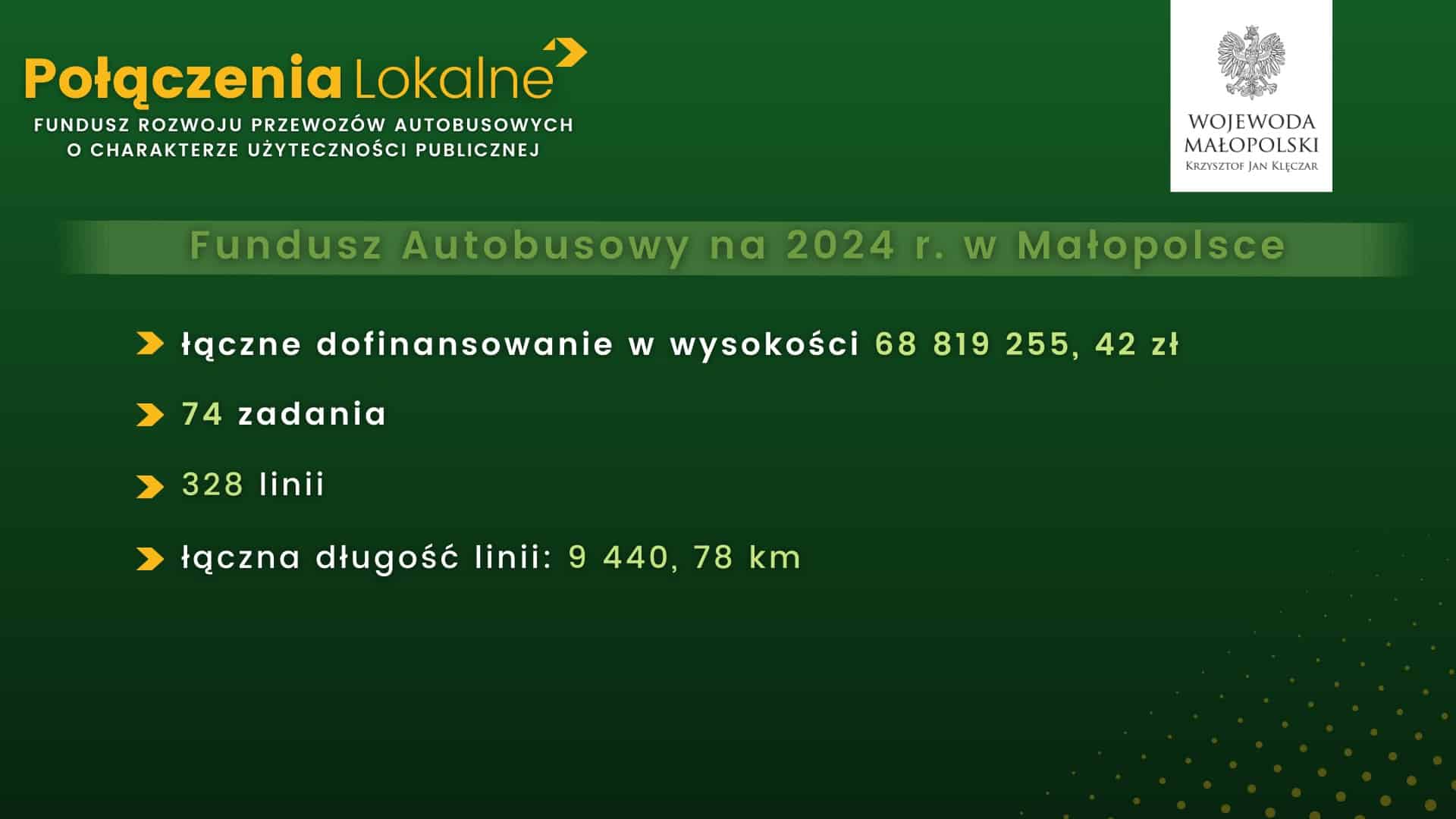 Jak przypomniano, są to kolejne środki, które uzupełniają bilans naboru na 2024 r. w ramach funduszu autobusowego do Małopolski. Wcześniejsze dofinansowanie dla 73 zadań pozwoliło na zawarcie umów umożliwiających uruchomienie 278 linii autobusowych.