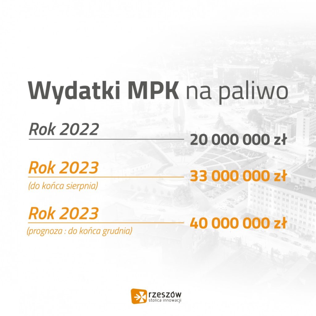 W tym samym czasie cena oleju napędowego dla MPK Rzeszów wzrosła z 3,30 zł netto do 6,10 zł netto. Na skutek tego autobus z silnikiem diesla spalający około 41 litrów paliwa na 100 km pokonuje ten dystans za ok. 250 zł, czyli prawie o 100 procent więcej niż w ubiegłym roku.