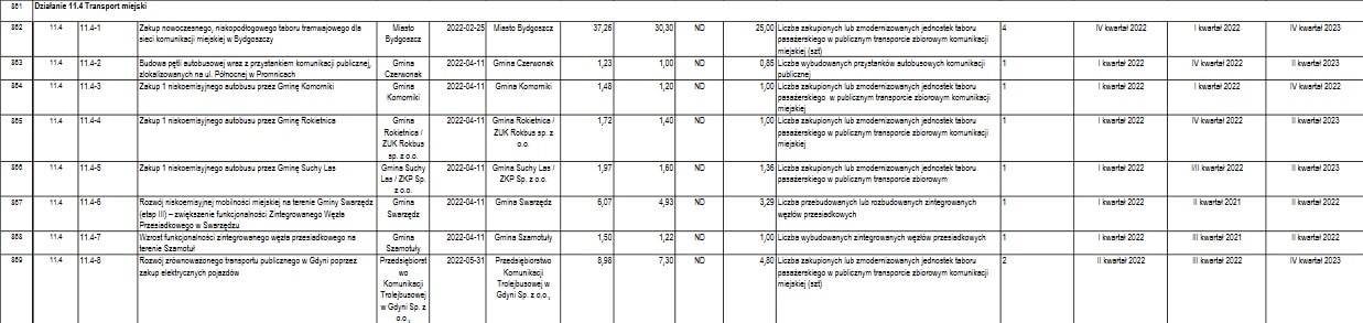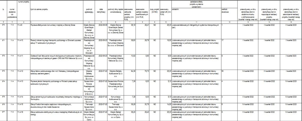 Poniżej przedstawiamy wszystkie transportowe projekty, które czekają na wsparcie, bądź już mają dofinansowanie z CUPT w ramach Programu Operacyjnego Infrastruktura i Środowisko w ramach "Działania 11.4 Transport miejski":