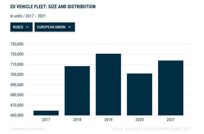 Zdaniem ACEA średni wiek autobusów w Unii Europejskiej to 12,7 lat. Na naszym kontynencie najstarszą flotę autobusów posiada