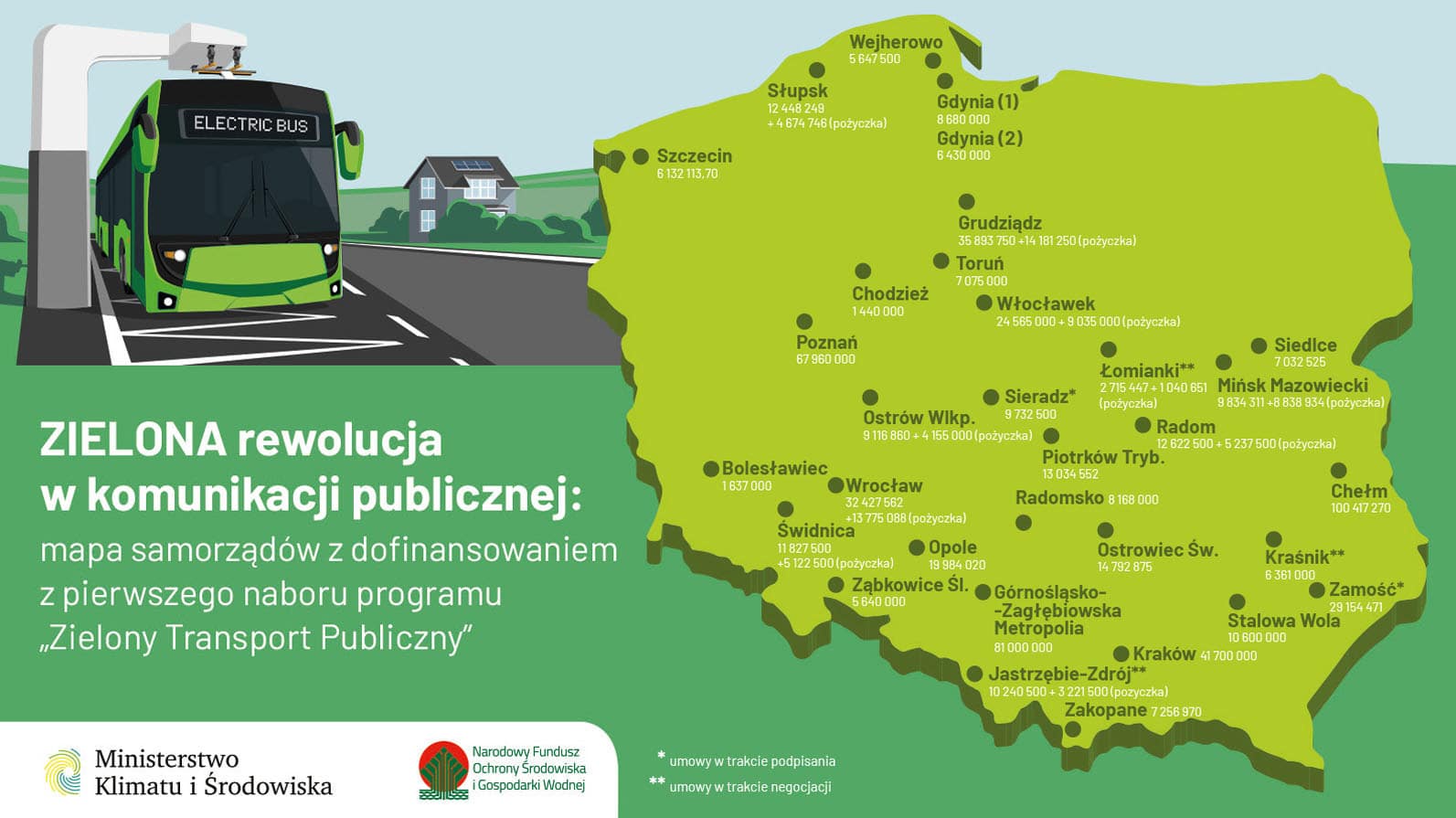 Wśród samorządów, które przeszły do fazy negocjacji warunków dofinansowania w drugiej odsłonie programu „Zielony transport publiczny” znalazło się 6 gmin uzdrowiskowych: Duszniki-Zdrój, Jedlina-Zdrój, Muszyna, Rabka-Zdrój, Świeradów-Zdrój, Augustów. Do tego spośród 67 gmin zakwalifikowanych do fazy negocjacyjnej drugiej edycji programu, cztery gminy: Andrychów, Rybnik Świdnik i Wałbrzych zadeklarowały chęć zakupu w sumie 48 autobusów wodorowych. W połączeniu z wodorowymi” zakupami zakontraktowanymi w pierwszym naborze (71 szt.) daje to już potencjalnie liczbę ponad 100 tego typu autobusów, które w ciągu najbliższych lat pojawią się na polskich ulicach.