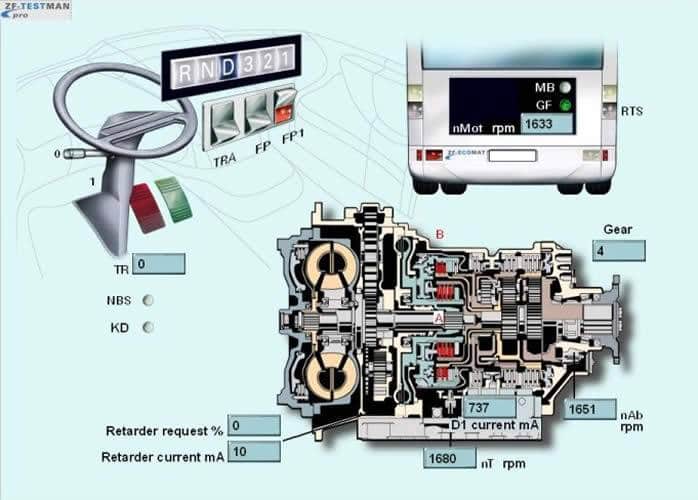 ZF Testman pro współpracuje ze wszystkimi układami ZF wyposażonymi w elektronikę kontrolną. Dzięki systemowi ZF Testman pro, wszystkie informacje istotne dla jakości funkcjonowania układu jezdnego mogą w każdej chwili zostać wyświetlone na ekranie komputera. Badania można przeprowadzać zarówno na pojeździe wyłączonym, jak i będącym w ruchu. Dzięki zapisowi danych eksploatacyjnych w trakcie jazdy oraz ich późniejszej ocenie, można uzyskać wiele istotnych informacji o pracy układu jezdnego, co z kolei pozwala uniknąć nieplanowanego wyłączenia pojazdu z eksploatacji. „Wprowadzenie do użytku elektroniki sterującej nowej generacji EST 146/147 umożliwia poprzez system ZF Testman Pro pełną diagnozę nie tylko skrzyni biegów ZF i jej peryferii, ale również systemu CAN-BUS, elektroniki sterującej silnika Euro 3 i niektórych systemów i układów pneumatycznych autobusu.” – mówi dyrektor Wojewódzki – „Ponadto, odczytując dane statystyczne z eksploatacji skrzyni biegów ZF, jak i autobusu możemy określić charakter obciążeń linii komunikacyjnych (w/g kryteriów UITP), średnią temperaturę oleju, ilość zatrzymań, procentowe wielkości obciążeń na poszczególnych biegach itd. Możemy także zmieniać (tylko serwis ZF) parametry programów sterujących jazdy od programów super oszczędnych do siłowych. Ponadto system Testman Pro posiada zapis elektroniczny instrukcji obsługi i napraw automatycznej skrzyni biegów, listę dopuszczonych olejów – resursy ich wymiany, schematy elektryczne i hydrauliczne, wszystkie wielkości i dopuszczalne parametry poprawnej pracy skrzyni biegów.”