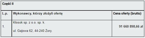 - Kłosok sp. z o.o. sp. k. – cena 91 660 898,66 PLN.