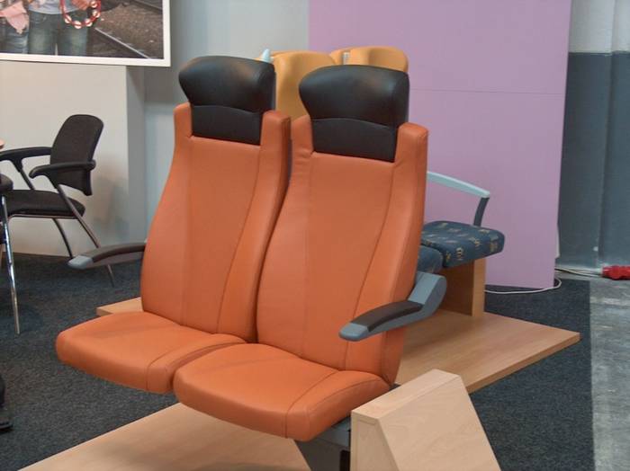 Specyficzną częścią taboru kolejowego, zwłaszcza pasażerskiego są siedzenia. Na targach zaprezentowały się dwie wiodące na rynku czeskim firmy jak BorCad oraz MSV Interior s.r.o. Obu producentów zaprezentowało nowe siedzenia i o ile w przypadku BorCad możemy mówić o ciekawych, estetycznych i funkcjonalnych rozwiązaniach, to druga firma zaprezentowała bardzo tandetny produkt, który został zamontowany w jednym ze zmodernizowanych wagonów. Cały fotel jest zbyt twardy, nawet jak na regionalne trasy na które jest przeznaczony, siedzisko jest zbyt małe, oparcie źle wyprofilowane, a zagłówek jest z jednej strony ścięty co powoduje, że głowę możemy oprzeć jedynie z jednej strony. Cóż, coraz bardziej widać, że Polska zaczyna wyprzedzać Czechów pod wieloma względami, w tym i w obszarze siedzeń do taboru kolejowego.