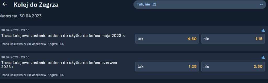 Kiedy pociągi pojadą do Zegrza? Bukmacherzy szacują i … przyjmują zakłady