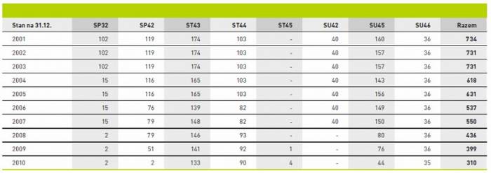 Tab. 1. Ilostan lokomotyw na dzień 31.12.2012 r.