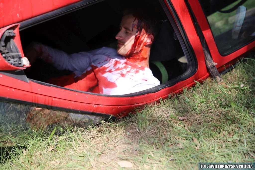 Na przejeździe kolejowo - drogowym w miejscowości Bławatków świętokrzyscy policjanci wzięli udział w manewrach zorganizowanych przez Ochotniczą Straż Pożarną w Piekoszowie, PKP Polskie Linie Kolejowe, Służbę Ochrony Kolei, firmę Nordkalk i Gminę Piekoszów.