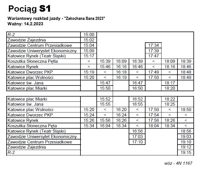 W tym roku „Zakochana Bana” kursować będzie we wtorek 14 lutego od 15:00 do 19:15. Wagon typu 4N, wspaniale ozdobiony i wypełniony romantyczną atmosferą, będzie kursował na trasie: CP Zawodzie – pl. Wolności – Słoneczna pętla – pl. Miarki – CP Zawodzie.