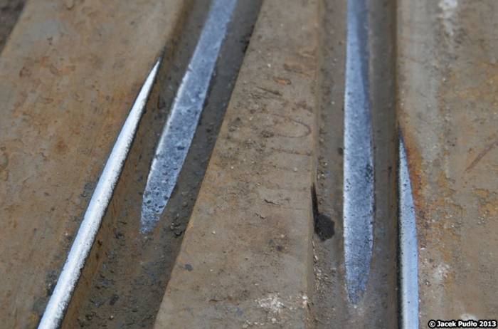 Co 0,5-1,0 m do szyn przyspawane są ceowniki, zapewniające odpowiedni rozstaw szyn.
