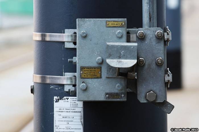 Do podstawy izolatora szyny ruchomej przykręcona jest cięgno, sięgające dolnej części słupa trakcyjnego, gdzie znajduje się przestawiana ręcznie dźwignia.