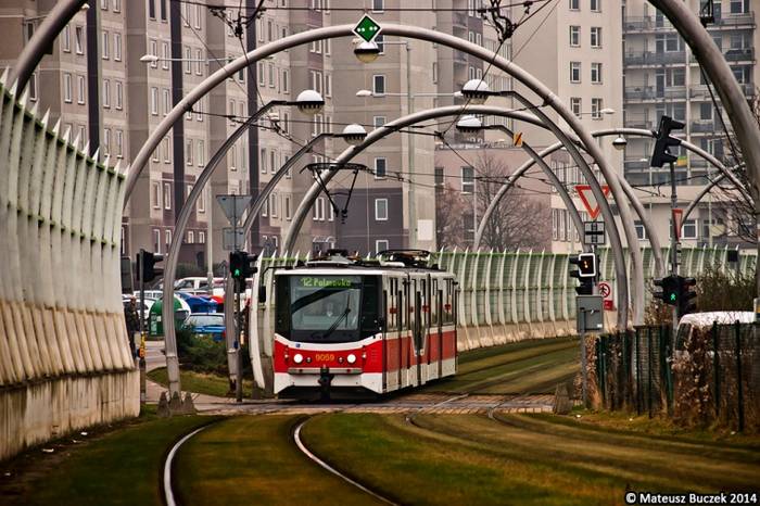 Kolejnym interesującym miejscem jest –utrzymane w zupełnie innym klimacie niż poprzednie –Vysehrad. Dostać się można tam liniami nr 3, 7 i 17. We Wzgórzu Wyszehradzkim jest wydrążony tunel, przez który przejeżdżają tramwaje. Z obydwu stron jest on zakończony wyrzeźbionymi w skale bramami. Kierując się w kierunku północnym od tunelu, dojdziemy do Železničnímost, czyli mostu kolejowego. Możemy podziwiać z niego niezwykłą panoramą Pragi –przejeżdżające przez inne mosty tramwaje z Hradczanami w tle.