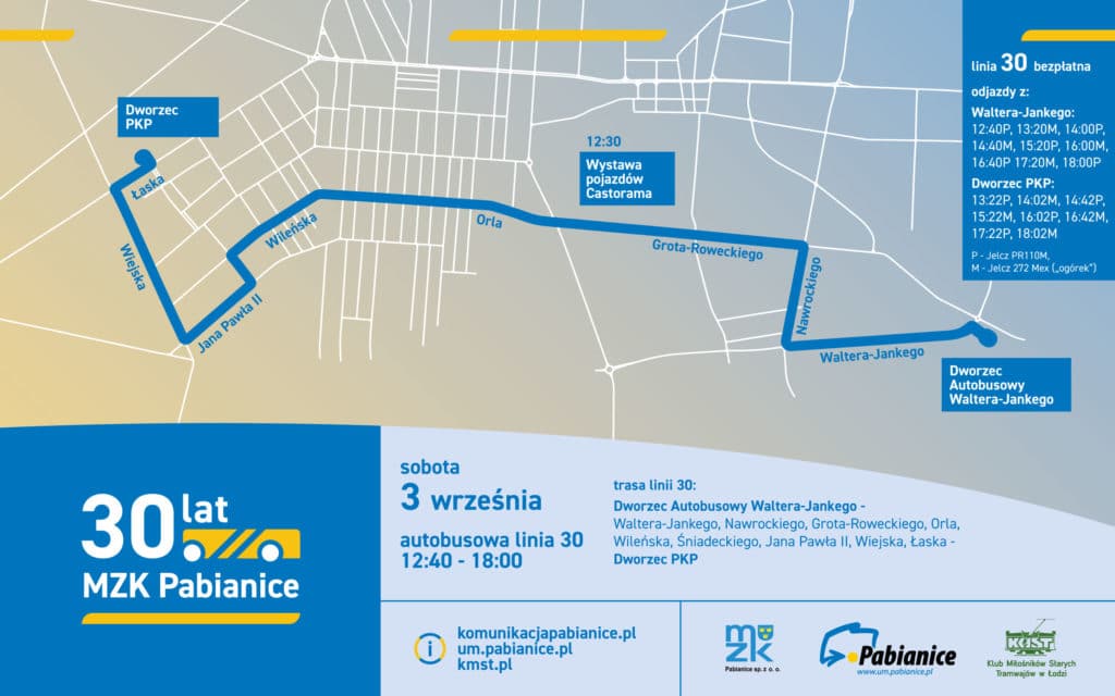 Z okazji tych dwóch okrągłych rocznic, Miejski Zakład Komunikacyjny wspólnie z Klubem Miłośników Starych Tramwajów w Łodzi i Urzędem Miejskim w Pabianicach przygotował dla mieszkańców podróż w czasie. 3 września, a więc przy okazji 44. Dni Pabianic, przyjedzie do naszego miasta zabytkowy tabor transportu publicznego.