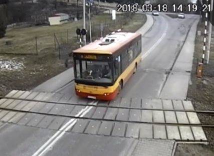 Autobusem przez przejazd mimo zamykających się szlabanów!