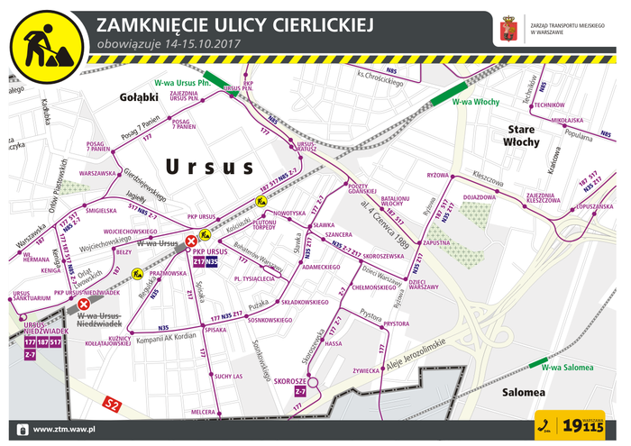 Weekendowe zamknięcie ulicy Cierlickiej w Warszawie, będą linie zastępcze