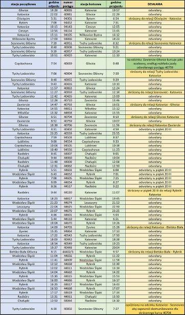 Ograniczenia w rozkładzie jazdy pociągów Kolei Śląskich