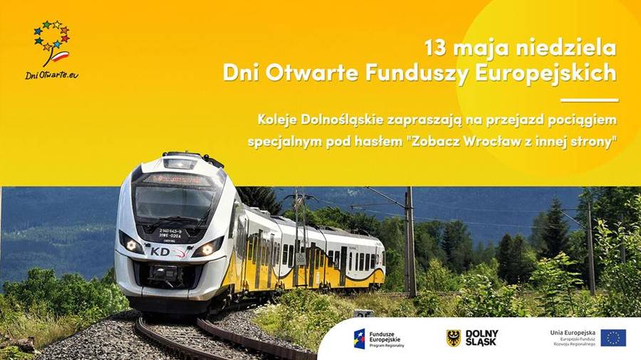 W niedzielę (13 maja)z okazji Dni Otwartych Funduszy Europejskich, Koleje Dolnośląskie zapraszają naprzejazd pociągiem…