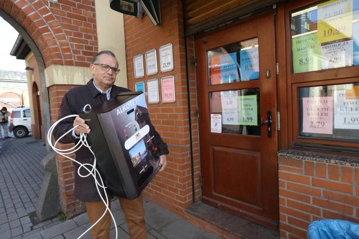 Niewielka skrzynka, a w niej 48 alkotestów, jest już przymocowana do parapetu w sklepie…