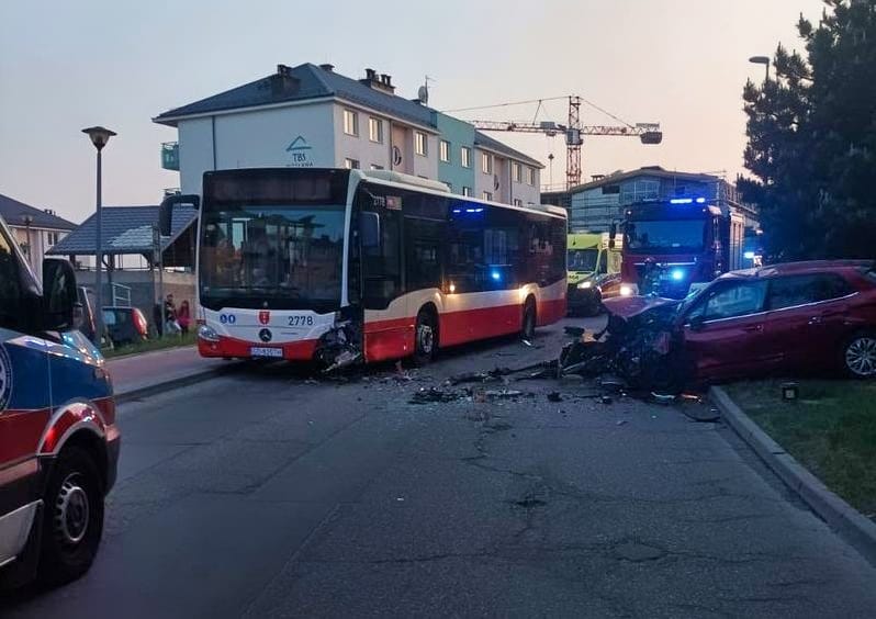 Szczecin: Pod autokarem zapadła się jezdnia. Tył utknął w dziurze