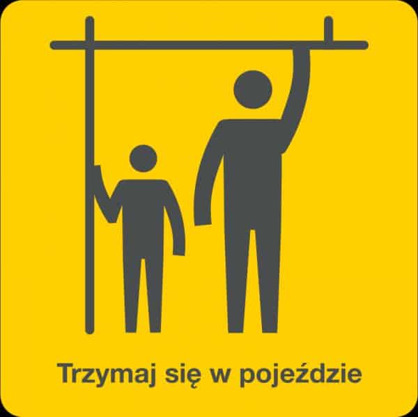 ZTM Poznań przypomina o konieczności trzymania się uchwytów; piktogramami